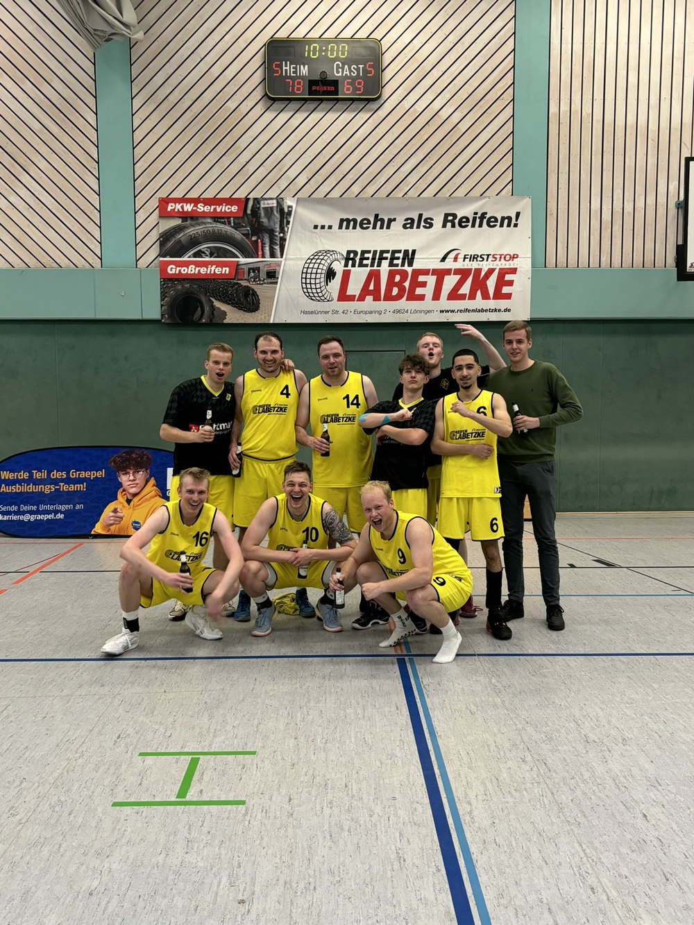 Löningen zeigte sich in dieser Chrunchtime unbeeindruckt und nervenstark von der Freiwurflinie und versenkte 8 von 10 Versuchen. An dieser Stelle kann man Torben Brogmus lobend erwähnen der 11/12 von der Linie war und mit 27 Punkten einen entscheidenen Beitrag zum Sieg der Löninger leistete. So stand am Ende die 78:69 Sensation gegen die eine Liga höher spielenden Gäste aus dem Artland fest.