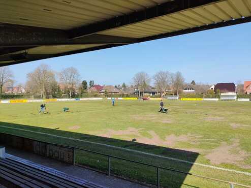 Mit freundlicher Unterstützung der Firma Klünner haben unsere Jungs heute den Rasen im Stockkamp Stadion repariert und begradigt. Damit nun alles schön einwächst, ist der Platz für mind. 4 Wochen gesperrt. Das Heimspiel nächste Woche gegen Stücklingen wird daher auf dem Hauptplatz an der Ringstraße ausgeführt. Ob das Spiel gegen Peheim am 23.04. auch betroffen ist, wird kurzfristig entschieden.
