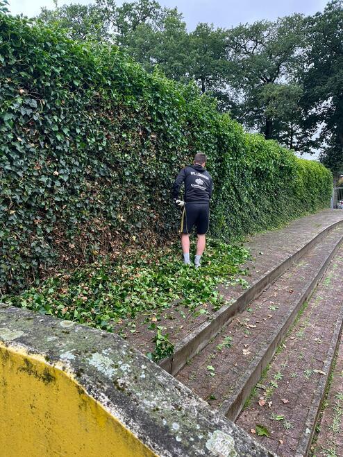 Wieder passend zum 1.Heimspiel haben die Jungs das Stadion geputzt. Vor 2 Wochen wurde bereits der gesamte Laub entfernt und neue Banden angebracht. Gestern folgte dann der Feinschliff: die Tornetze wurden ausgetauscht und die Tribüne für die Zuschauer aufgeräumt. Zusätzlich walzte Spieler und Vorstandsmitglied Lukas den Platz.