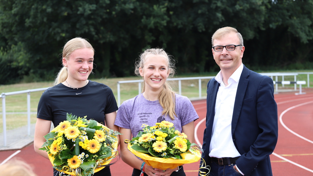 Bereits vor zwei Wochen hatte der VfL Vorsitzende die Gelegenheit Pia Albers und Lera Miller auf der Trainingsanlage an der Ringstraße zu ihrem großen Erfolg zu gratulieren: Bei der U16 DM in Bremen hat Pia Gold über 300m Hürden und Lera Gold über 3000m geholt. Robert wünscht den beiden weiterhin viel Erfolg und bedankte sich auch beim Trainer und Abteilungsleiter Armin Beyer für sein großes Engagement.