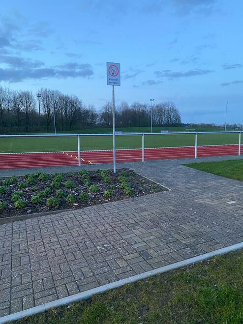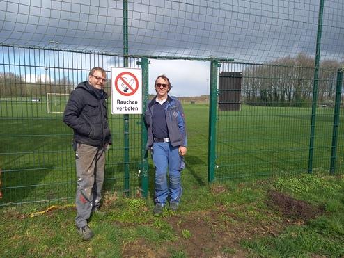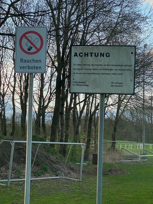 Neue Schilder weisen auf das Rauchverbot auf den Sportplätzen an der Ringstraße hin