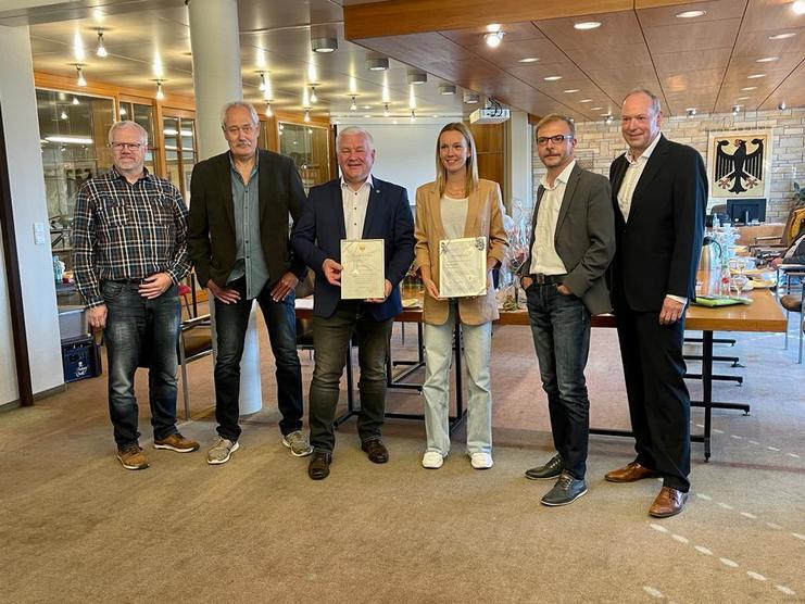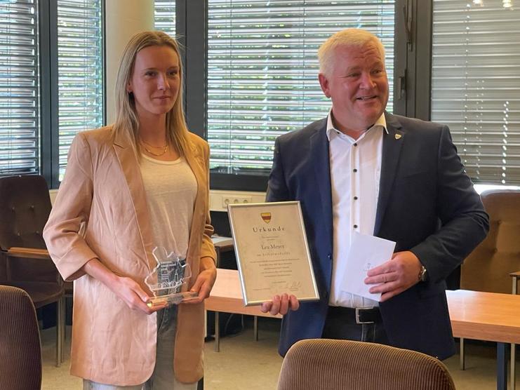 Auf einem Empfang der Stadt Löningen mit der Familie und langjährigen Wegbegleitern hat die Stadt Löningen am vergangenen Freitag Lea Meyer für ihren Lauf zum Vize-EM-Titel geehrt. Bürgermeister Burkard Sibbel würdigte in seiner Laudatio vor allem die starke Mentalität der Läuferin, die nach dem Rückschlag bei der WM in Eugene/USA sich so stark zurückgemeldet hat. Der Vorsitzende des Heimatvereins VfL Löningen Robert Koch ernannte Lea auf einstimmigen Beschluss des Vorstandes zum Ehrenmitglied. Robert betonte den Stolz beim VfL wenn in den Übertragungen im TV der Heimatverein der so erfolgreichen Läuferin Deutschland oder sogar Europaweit genannt wird. Er wies dabei auch auf die langjährige und fundierte Nachwuchsarbeit der Leichtathletik-Abteilung des Vereins unter Armin Beyer und den weiteren Trainer/innen hin.