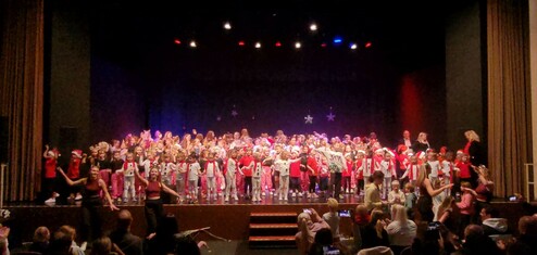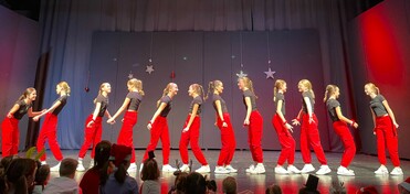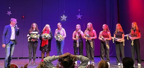 Bevor zum letzten Tanz noch einmal alle Tänzer und Tänzerinnen auf die Bühne kamen, ließ es sich der Vorstandsvorsitzende Robert Koch nicht nehmen, persönlich Hella, Lina, Caroline, Jil und Nora ein Präsent für das Ablegen der Übungsleiterlizenz und Michaela, Christin und Mara einen Blumenstrauß als Dankeschön für die Organisation der gelungenen Weihnachtsaufführung zu überreichen. Danach beschloss der gemeinsame Tanz "Berge mal versetzen" die Show.