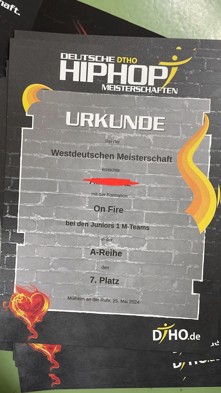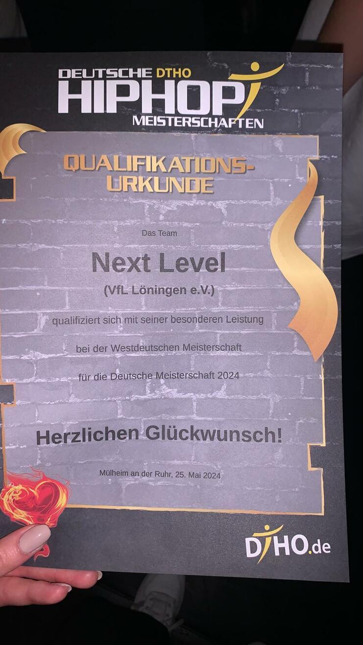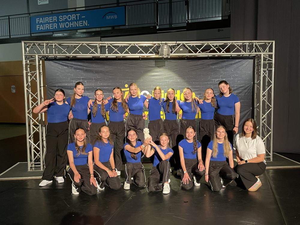 Am 25.05. hieß es wieder Bühne frei für den VfL Löningen. Schon um 04:30 Uhr ging es mit dem Bus los nach Mülheim a.d.R., wo wir schließlich um 07:30 Uhr ankamen. Für die Gruppe On Fire ging es schon um 08:45 Uhr das erste Mal auf die Bühne, Next Level tanzte kurz darauf. Schon war die Sichtungsrunde um. Next Level trat in der Altersklasse Kids L-Group an, On Fire in der Juniors 1 M-Group. Nach dem ersten Auftritt wurden beide Formationen in die A-Class eingeteilt und erzielten dort jeweils den 7. Platz. Durch die Teilnahme in der Kategorie Kids konnte sich Next Level sogar für die Deutsche Meisterschaft qualifizieren! Die Konkurrenz war groß und die Anforderungen sehr schwer, doch haben sich die Tänzerinnen gut geschlagen und viel dazugelernt. Die frühe Anreise hat sich auf jeden Fall gelohnt und alle hatten einen tollen Tag! Alle sind motiviert für das nächste Jahr, um sich zu verbessern und wieder so eine spannende Wettkampfsaison mitzuerleben.