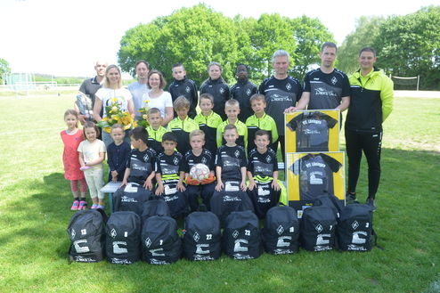 Dank der großzügigen finanziellen Unterstützung dieser beiden Löninger Unternehmen wurden über 20 Jugendspieler der F2- und F3-Jugend des VfL Löningens mit schicken Trainingsanzügen, Aufwärmshirts, Windjacken und Rucksäcken ausgestattet.