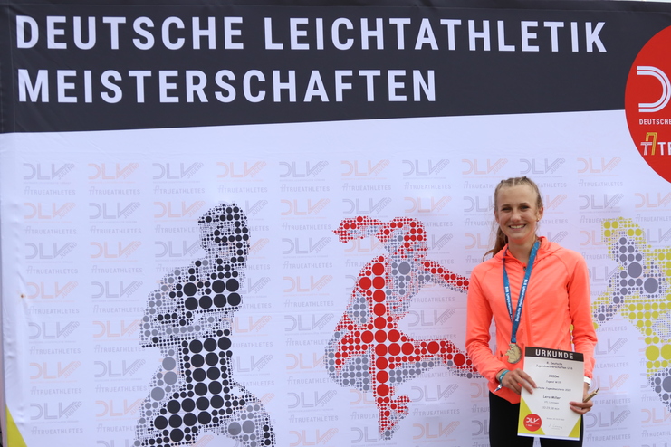 Ler Miller beim Zieleinlauf nach 3.000 m.Glückwunsch zum DM-Titel