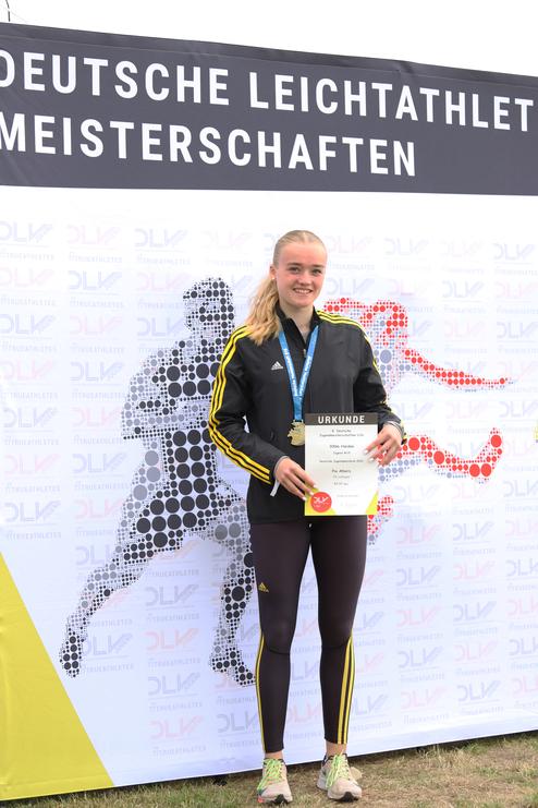 Die Leichtathleten des VfL Löningen schwimmen weiter auf der Erfolgwelle. Am zweiten Tag der Deutschen Meisterschaften der U16 gab es die zweite Goldmedaille des Wochenendes: Pia Albers gewann das Finale über 300 m Hürden in bärenstarken 43,92 Sekunden und sicherte sich den DM-Titel.
