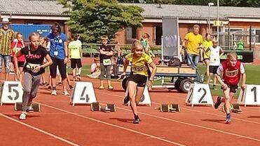 Fiona Burke (W11) absolvierte die meisten Disziplinen: im Ballwurf, Weitsprung und 50m Lauf (B-Finale) blieb sie leider unter ihren Bestweiten bzw. ihrer Bestzeit, doch dies gelang ihr - bei 27°C - im abschließenden 800m Lauf: Fiona erreichte den 6.Platz in 3:24,2min (PB). Gleich zwei Siege "heimste" sich Ida Moorkamp (W11) in der U12 ein. Auch nach den Sommerferien zeigte sich Ida in guter Form: Sie gewann den 50m Lauf in 8,15s (Vorlaufzeit: 8,07s) und noch überraschender war ihr Weitsprungsieg. Mit drei von vier Sprüngen über 4,00m führte sie klar das Weitsprungfeld an. Letztendlich belegte Ida freudestrahlend den 1.Platz mit 4,15m (PB).