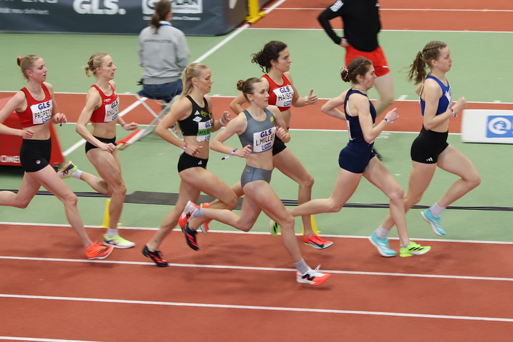 zum Bild: 1.500 m Finale der Frauen. In silber-grau läuft Lera Miller. Foto: Antonia Beyer