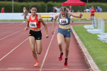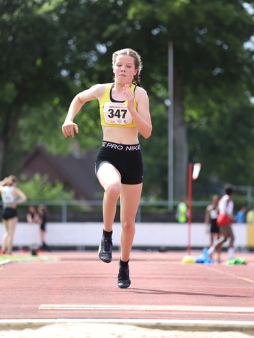 Zur U16-DM will auch Pia Albers. Abgrund einer etwas längeren Verletzungspause hatte sie noch keine Starts in der Freiluftsaison absolviert und das Ende des Qualifikationszeitraumes rückte immer näher. So entschieden sich Pia und ihr Trainerteam für einen Start über 300 m Hürden mit dem Ziel zumindestens die DM-Quali von 48,00 Sekunden zu laufen. Nach einem verhaltenen Start auf den ersten 120 m fand Pia dann ins Rennen und kam auf der Zielgeraden immer näher an die führende Karla Humphrey (VfL Eintracht Hannover) heran. Am Ende reichte es nicht für einen Sieg, doch mit 46,12 Sekunden lief Pia eine neue persönliche Bestleistung und unterbot die Norm deutlich. Karla (45,85 Sekunden) und Pia liegen aktuell auf Platz drei und vier der deutschen Besteliste und sind somit Medaillenkandidatinnen für die U16-DM. Da bei der U16 Zusatznormen gefordert werden absolvierte Pia noch den Weitsprungwettkampf. Mit 5,36 m belegte sie knapp geschlagen Platz drei, doch die Zusatznorm von 4,50 m war kein Thema. Somit kann Pia nun wie auch Lera Miller für die DM planen.