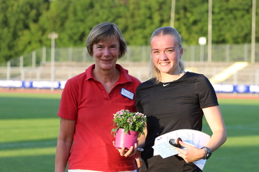 Birgit Surmann von der NLV Region Oldenburg nutzte die Möglichkeit im Rahmen des Sportfestes noch Pia Albers nachträglich für ihren U16-DM Titel im Mehrkampf Block LAUF zu ehren. Vor gut einem Jahr gewann sie den Titel in Markt Schwaben mit einem neunen W14-Landesrekord.