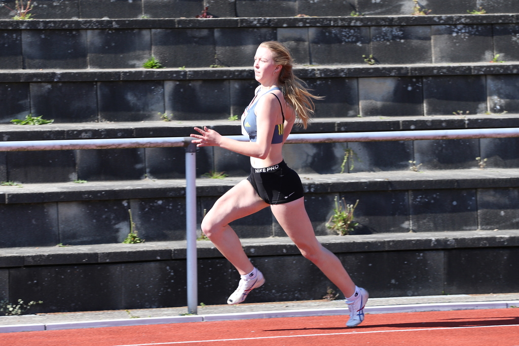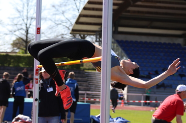 Sophie stieg mit 1,52 m in den Wettkampf ein, übersprang diese 1,52 m und dann 1,56 im ersten Versuch. Für 1,60 m und 1,64 m benötigte sie dann jewiels 2 Versuche. Dann folgten 1,68 m ohne Fehlversuch und sie hatte bereits jetzt ihre persönliche Bestleistung übertroffen. Im zweiten Versuch überquerte sie dann 1,71 m. Zusammen mit Trainerin Antonia Beyer freute sich die Siegerin, dass dieses schon so früh gelang und beide nun hoffnungsvoll der Saison entgegenschauen können. Nicht "DM-reif", aber dennoch gut war ihre Leistung im Kugelstoßen. Die 3kg-Kugel landete bei 10,40 m und dies bedeutete eine neue persönliche Bestleistung und Platz drei bei der U18.