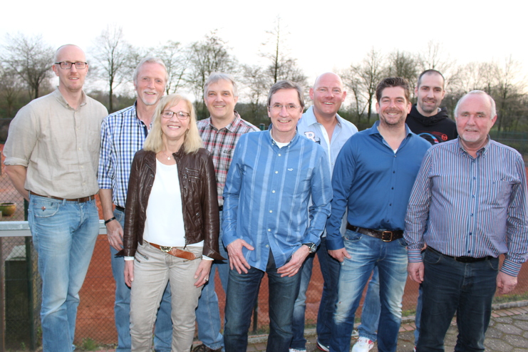 zum Bild: Vorstand der Tennis-Abteilung des VfL Löningen 2017 (von links): Guido Thöle, Dieter Schmitz, Hannelore Brak, Frank Leonhardt, Dr. Jörg Bringer, Udo Brands, Marco Haßdenteufel, Michael Hegger und Karl-Heinz Schulze. Foto: Dr. Jörg Bringer.