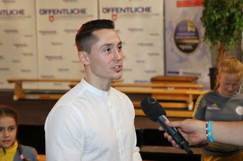 "Es ist mir immer wieder eine Ehre, wenn die Leute für mich aufstehen – auch wenn ich dann vielleicht nicht mehr zu sehen bin“, sagte der 1,72 Meter große Kunstturner Toba mit einem Grinsen, als er bei seiner Begrüßung mit Standing-Ovations aller Gäste willkommen geheißen wurde: „Solche Veranstaltungen machen mir immer wieder großen Spaß – die Vereine leisten eine ganz, ganz wichtige Arbeit.“