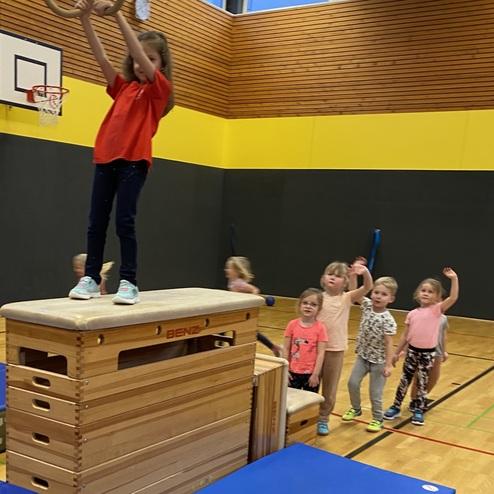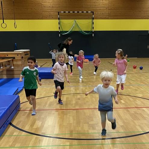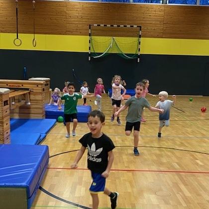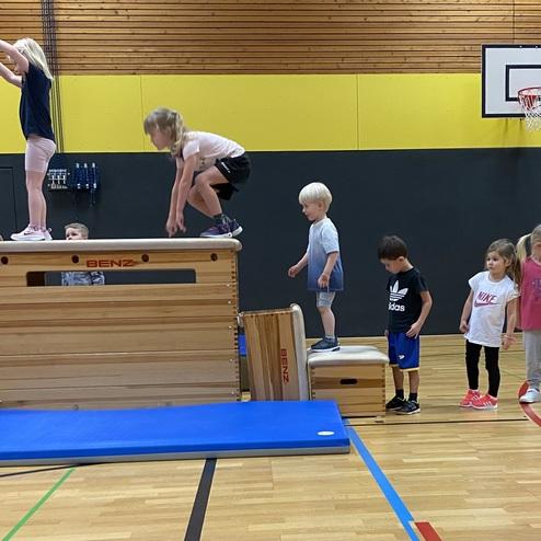 Das Kleinkinderturnen ist ein Angebot für Kinder im Alter von ca. 3 bis 6 Jahren. Dabei erobern die Kinder erstmals ohne ihre Eltern die Turnhalle. Mit der sich schnell erweiternden Sprachfähigkeit beginnt in der Auseinandersetzung mit den Umgebungs- und Umweltbedingungen der erste Abschnitt für die Entwicklung der „begrifflichen Intelligenz“. Kinder beginnen zu verstehen und lösen durch Denken zunächst einfache und später immer schwierigere Bewegungsaufgaben. Die vielfältigen Angebote wie Bewegungsspiele, Ballspiele, Turnübungen an Geräten, lassen die Turnstunden zu einer neuen Bewegungs- und Erlebniswelt werden. Durch aktives Handeln und kreativen Umgang mit ihrer Umwelt verbessern Kinder ihre Alltagsmotorik und erweitern ihr Bewegungsrepertoire. (DTB)