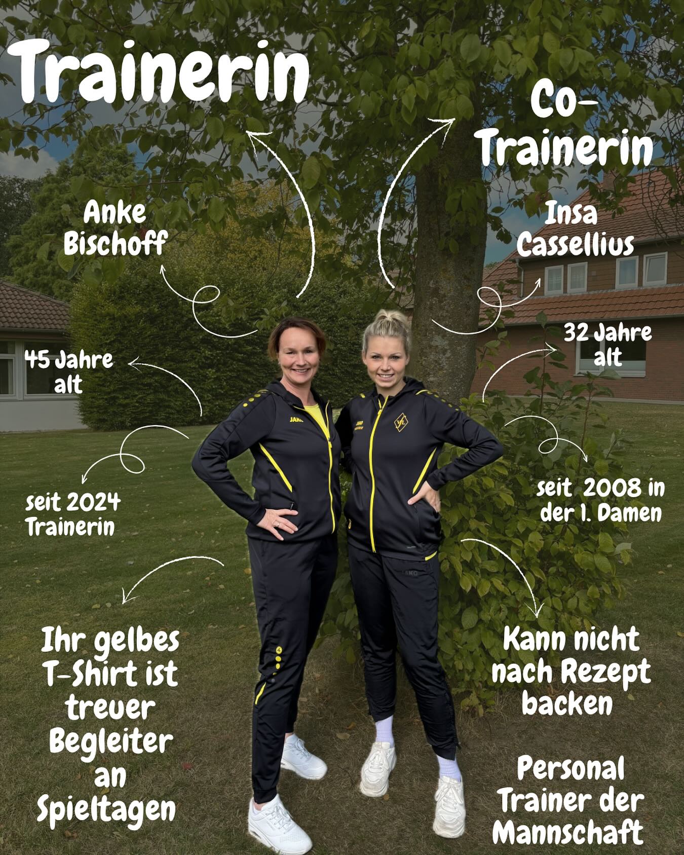 Zuerst möchten wir euch unsere Trainerin Anke vorstellen, die dieses Jahr von unserer Außenangreiferin Insa als Co-Trainerin unterstützt wird.💛🖤