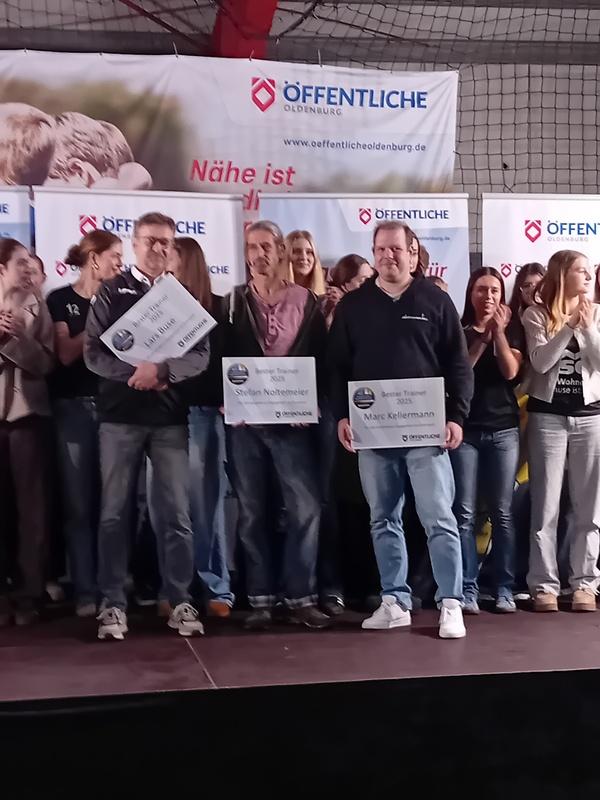 Unser VfL Nachwuchstrainer Marc Kellermann gewann gemeinsam mit zwei weiteren Trainern den Titel als bester Nachwuchstrainer - prämiert mit Trainerausstattung und einer Reise zum größten deutschen Beachvolleyballturnier in Dortmund. Für die erfolgreiche Nachwuchsarbeit sprang für die Volleyball-Abteilung des VfL Löningen ein dritter Platz heraus, hinter dem OTB und BW Lohne. Die Volleyballer freuen sich über einen guten Zuschuss zur Abteilungskasse.