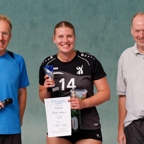 Schwerpunkt des Turniers am Samstag waren aber zwei Felder mit Mannschaften aus der Kreisklasse und Kreisliga der Damen. Nach einer Vorrunde in zwei Dreier-Gruppen setzte sich im Finale der SC Bakum gegen GW Brockdorf 3 durch. Die Plätze 3 und 4 gingen an die beiden Teams von VV Vechta. Auf den Plätzen 5 und 6 folgten BW Lohne 5 und VfL Löningen 3. Vor allem die letzten beiden Teams setzen sich aus noch jungen Spielerinnen der Jugend zusammen. Beim VfL Löningen hat Ansgar Horstmann zusammen mit Marc Kellermann die Aufgabe übernommen das Team an den Liga-Betrieb der Kreisklasse fit zu machen. Auch am zweiten Tag gab es ein Feld mit Mannschaften aus der Kreisklasse, in dem sich erneut der SC Bakum, diesmal vor SV Ofenerdiek und den Löninger Teams durchsetzte.